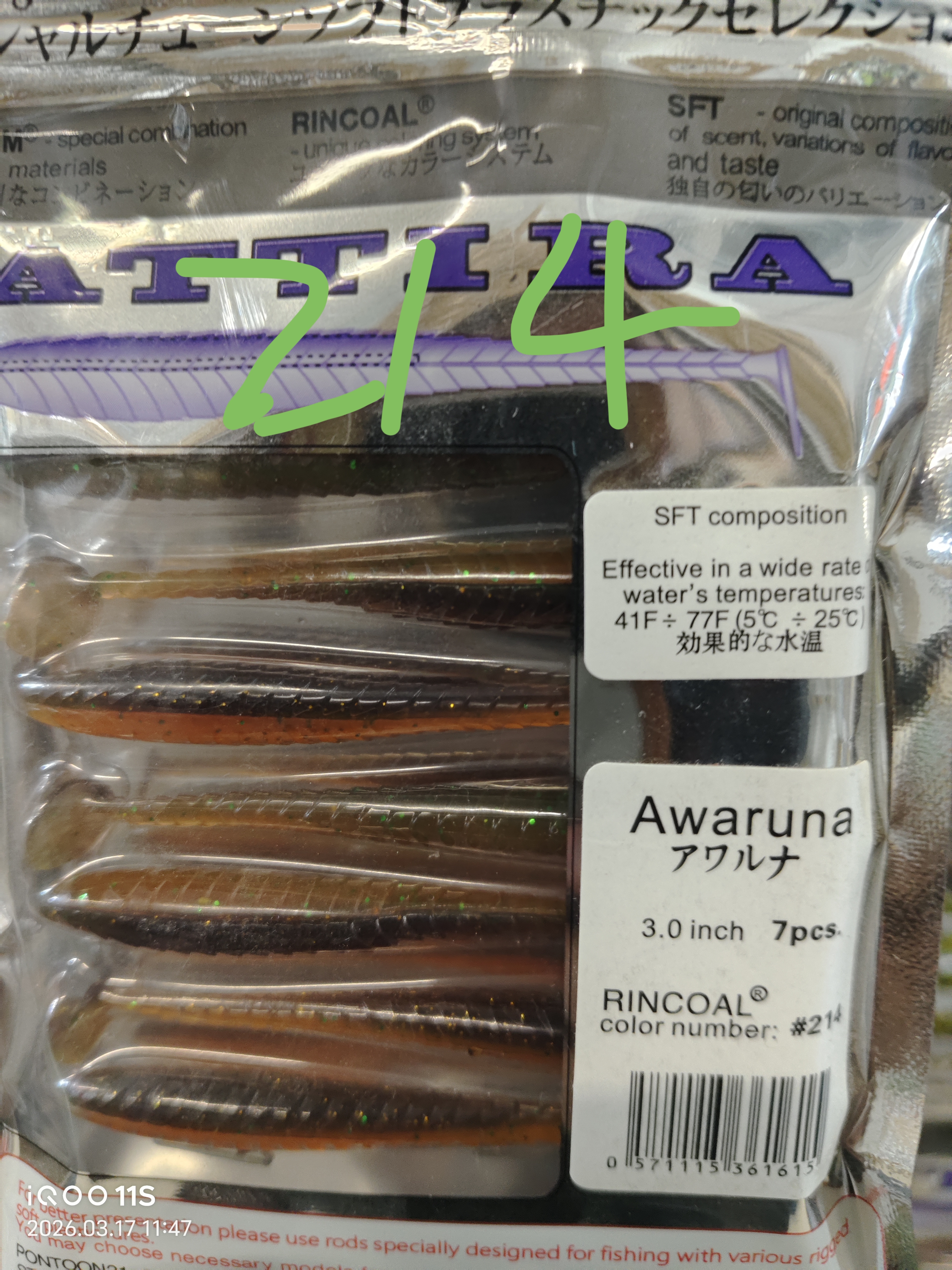 Силиконовые приманки для рыбалки AWARUNA 7шт 3.0inch /#214