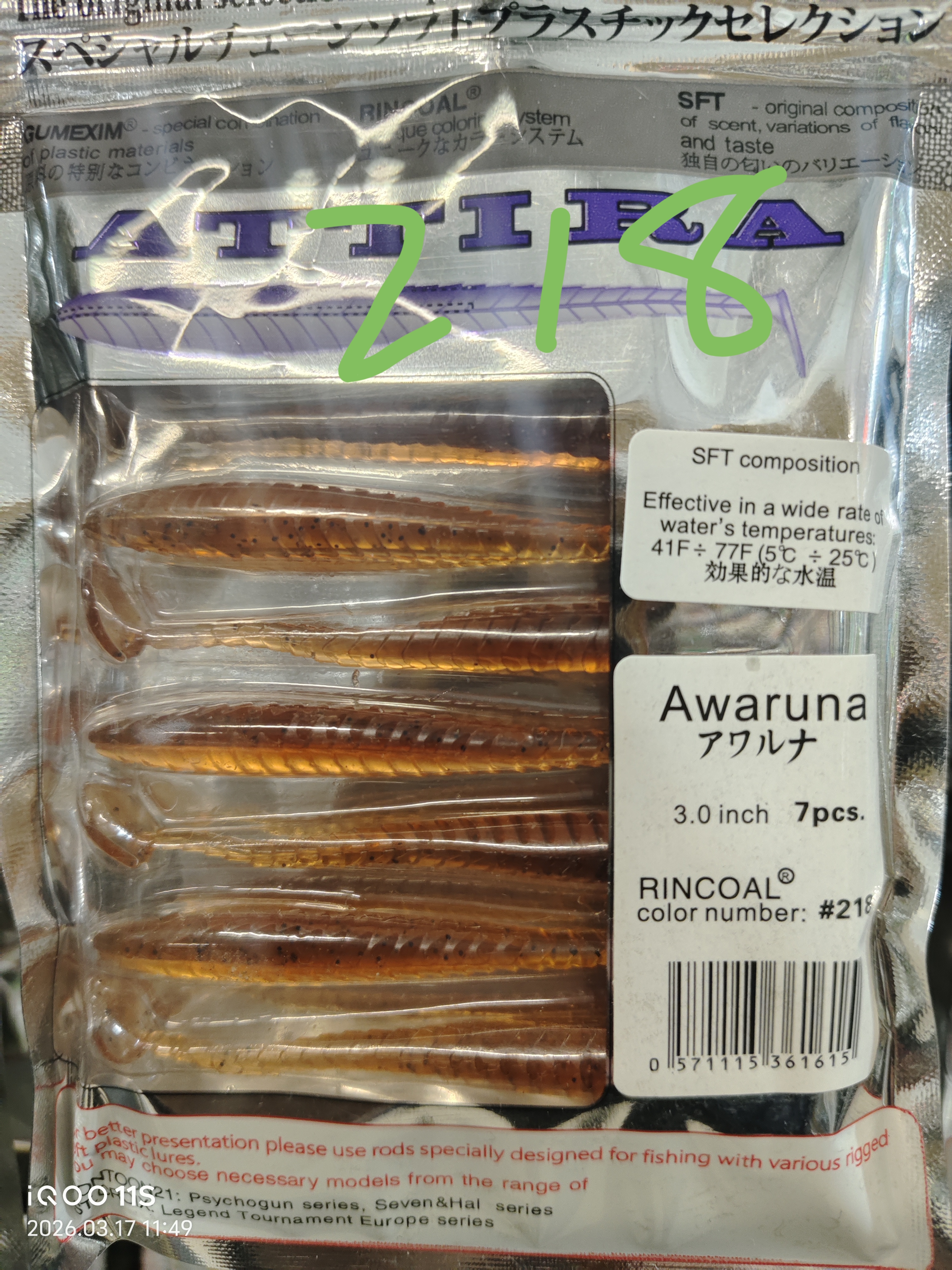 Силиконовые приманки для рыбалки AWARUNA 7шт 3.0inch /#218